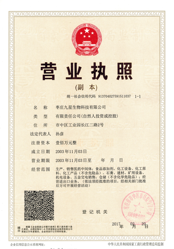 棗莊九星生物科技有限公司 版權(quán)所有(C)2023 網(wǎng)絡(luò)支持 中國化工網(wǎng) 生意寶 網(wǎng)盛建站 著作權(quán)聲明 企業(yè)郵局 魯ICP備12006429號-1